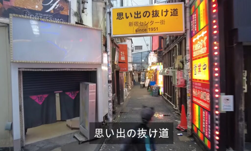 セントラルロードの煌びやかさから一転、新宿東宝ビルの右奥へ進むと、空気が澱んだような一角が現れます。 ここが「思い出の抜け道」