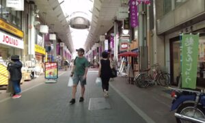 高いアーケードの屋根からは柔らかな自然光が差し込み、天候に左右されない明るく広々とした空間が続いています。道の両脇には昔ながらの和菓子店やカフェなど多様な店舗が隙間なく並び、買い物袋を提げて歩く人々の姿から、この場所が地域住民の生活に深く根付いていることが伺えます。